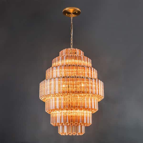 Arba 20-Light Mid-Century Modern Gold and Orange Glass 4-Tier Chandelier for Living Room