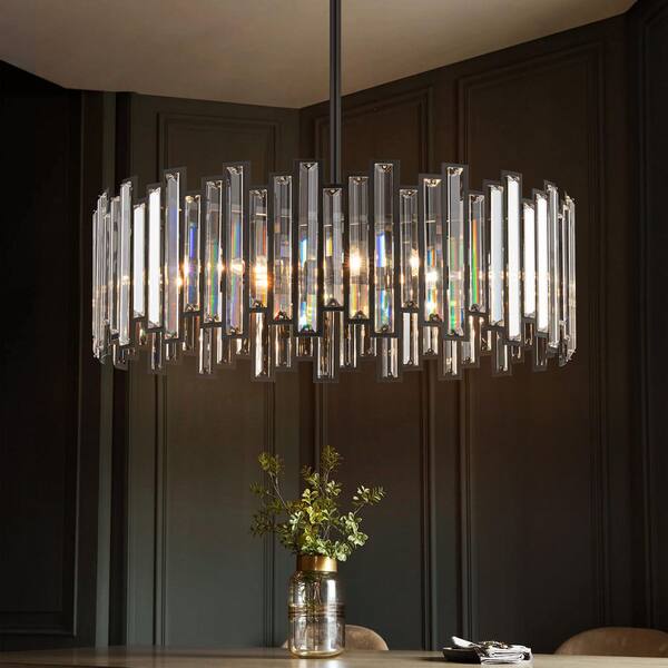 Celeste 6-Light Matte Black Modern Glam Crystal 23.6 in. Industrial Round Drum Chandelier