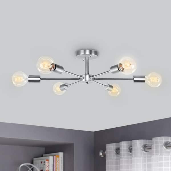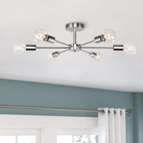 Claire 23.62 in. 6-Light Chrome Mid-Century Pendant Ceiling Light Sputnik Semi- Flush Mount Light