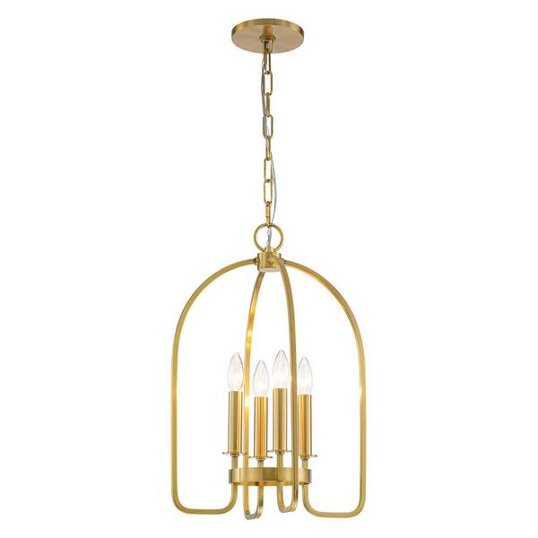 Eleanore 4-Light Aged Brass Lantern Geometric Pendant Light