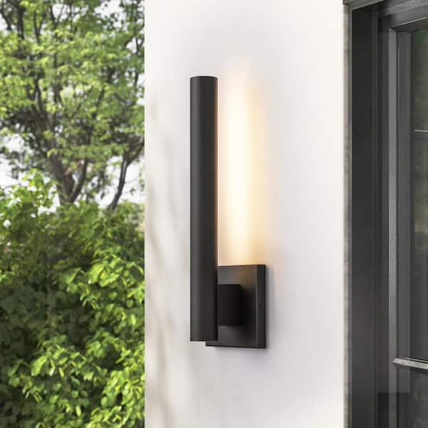 Hailey 1-Light Matte Black Outdoor Hardwired LED Cylinder Wall Sconce