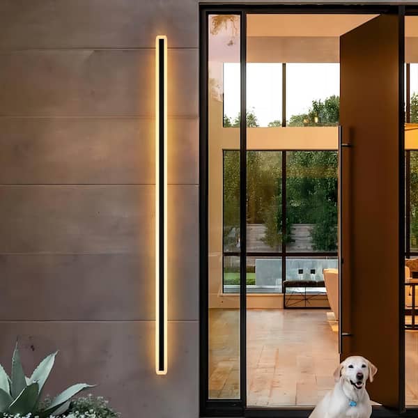 Hannah 70.9 in. Modern Linear Acrylic IP65 Waterproof Hardwired Black Outdoor Barn Wall Sconce Light, Integrated LED