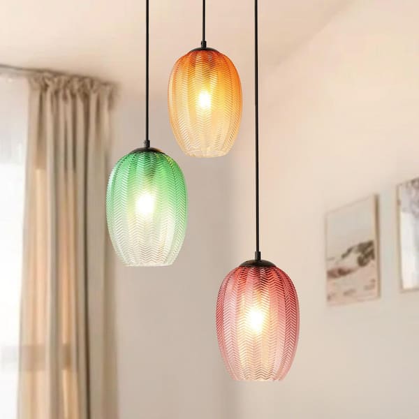 Harper 3-Light Modern Black Cylinder Colored Textured Gradient Glass Pendant Light for Kitchen Island or Stairway