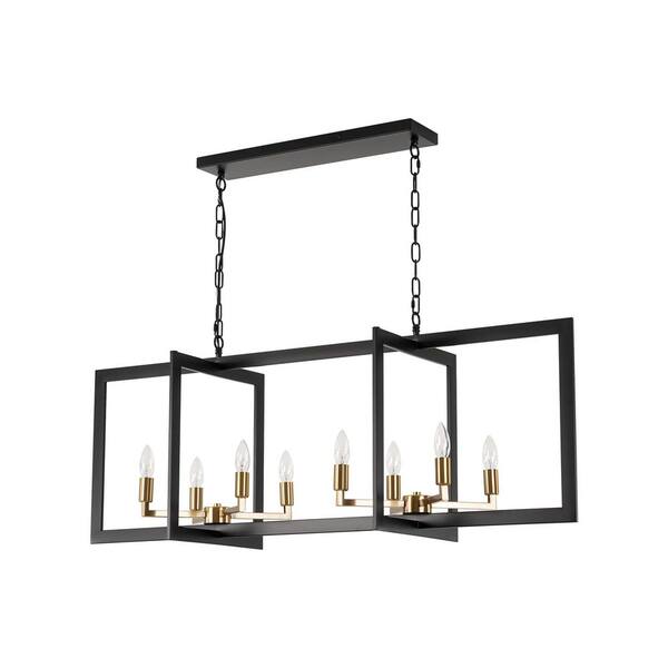 Jamii 8-Light Industrial Matte Black and Brass Rectangular Frame Pendant Lighting for Dining Room or Kitchen Island