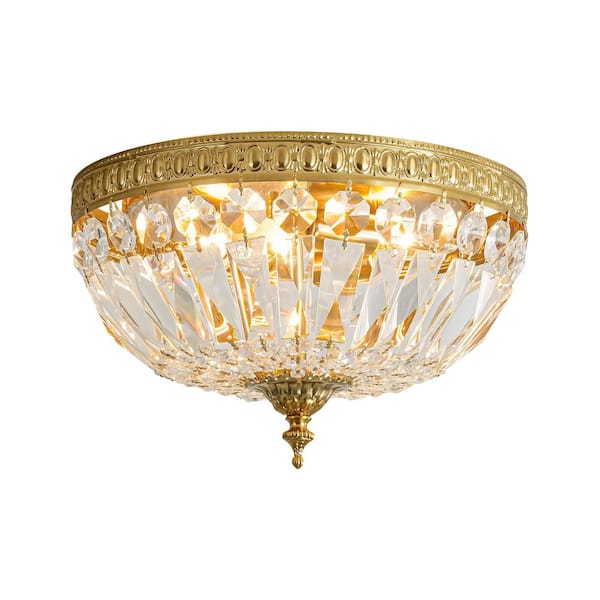 Jarvis 13 In. 3-Light Classic Crystal Flush Mount with Gold Finish and Petal-Shaped Shade