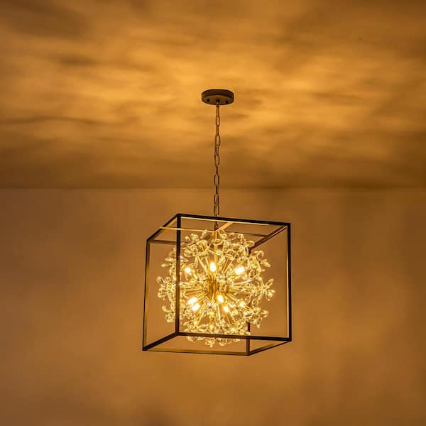 Jill Black 10-Light Square Frame Crystal Petal Dandelion Chandelier with Clear Crystal Petal Decoration