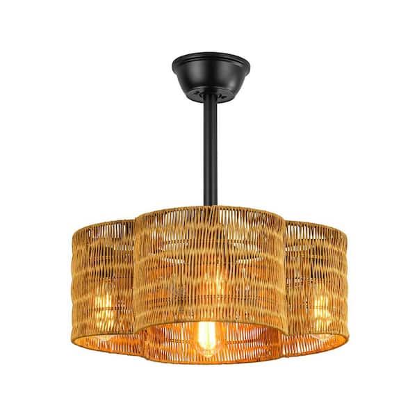 Jolie 4-Light 20 in. Farmhouse Black and Deep Brown Geometric Drum Indoor Ceiling Fan Lighting with Remote Included