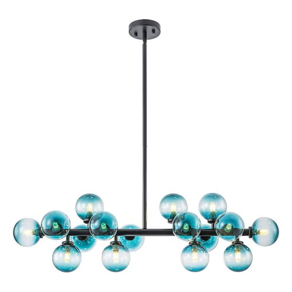 Kaitlyn 16-Light Matte Black Modern Linear Cluster Gradient Blue Glass Globe Bubble Chandelier
