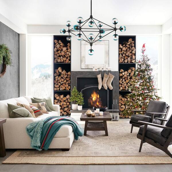 Machael 15-Light Black Modern Blue Glass Globe Bubble Chandelier