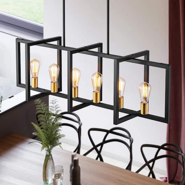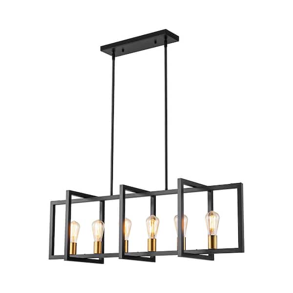 Mason 6-Light Matte Black with Gold Farmhouse Kitchen Island Pendant Light with Upward Light Base