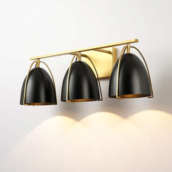 Mattheo 23.23 in. W 3-Light Matte Black with Brushed Gold Half-Cut Dome Metal Vanity Light