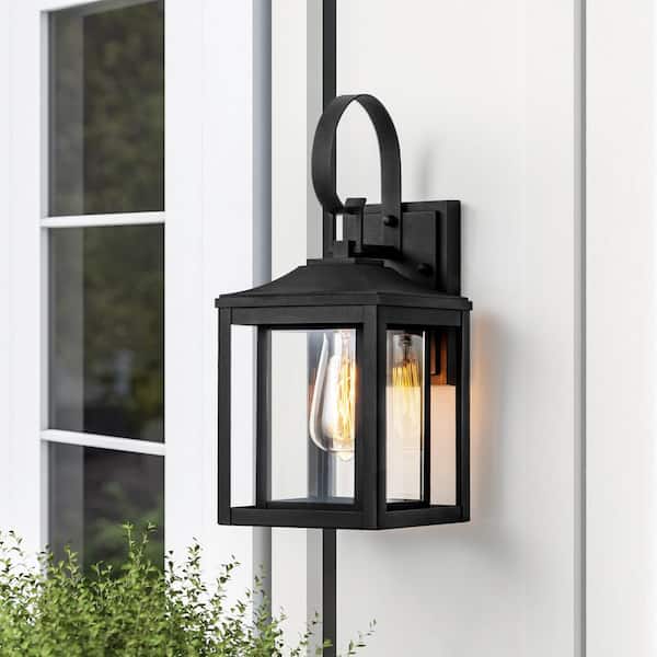 Mia 11 in. 1-Light Matte Black Outdoor Lantern Wall Sconce