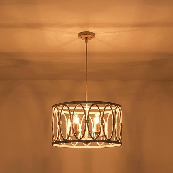 Rafael 5-Light Vintage Industrial Retro White Drum Chandelier for Living Room, Dining Room, or Kitchen