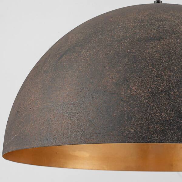 Skyler Industrial 19.68 in. 1-Light Vintage Black Brown Oversized lsland Dome Gold-leaf Interior Pendant Light