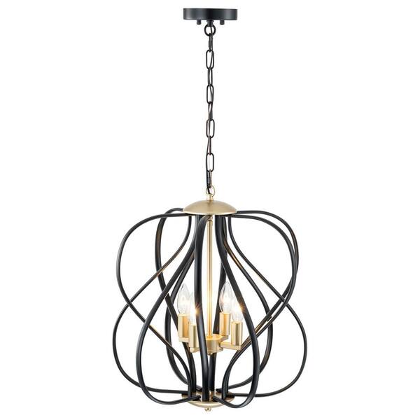 Voorhies 4-Light Mid-Century Modern Black and Gold Linear Geometric Pendant Light
