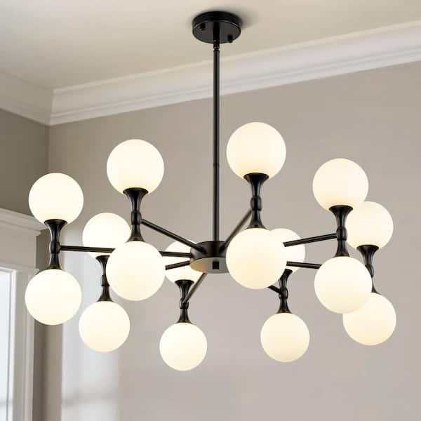 Zenobia 16-Light Black Sputnik Tiered Opal Globe Bubble Chandelier