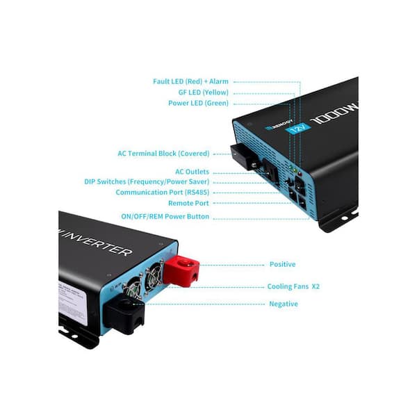 1000-Watt 12V DC to 120V AC Pure Sine Wave Inverter Off-Grid Power Saving Solar Converter Remote-Control for Li,AGM,GEL
