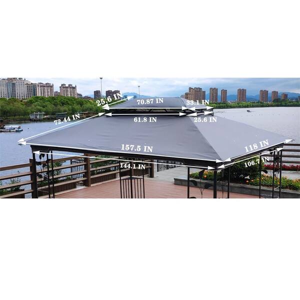 Replacement Canopy Cover Only, 13 x 10 ft. Patio Double Roof Gazebo Canopy Top Fabric (Frame Not Include), Gray