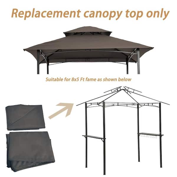 Replacement Canopy Cover Only, 8 x 5 ft. Patio Double Tiered Grill Gazebo Canopy Top Fabric (Frame Not Include), Brown