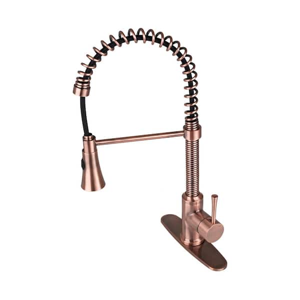 Residential Single-Handle Spring Coil Pull-Down Sprayer Kitchen Faucet in Antique Copper with Deck Plate