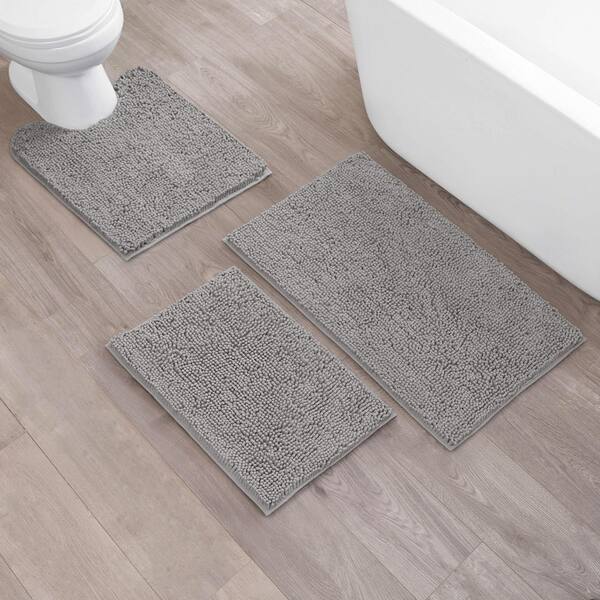 2000 Light Gray 21 in. x 34 in. Solid Color Polyester 3-Piece Bath Mat Set