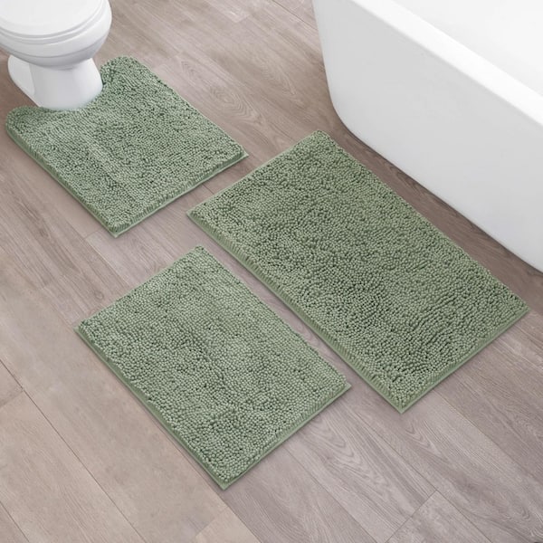 2000 Sage Green 21 in. x 34 in. Solid Color Polyester 3-Piece Bath Mat Set