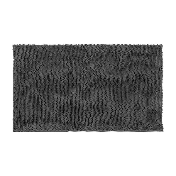 Plush Shag Chenille Gray 17 in. x 24 in. Bath Rug