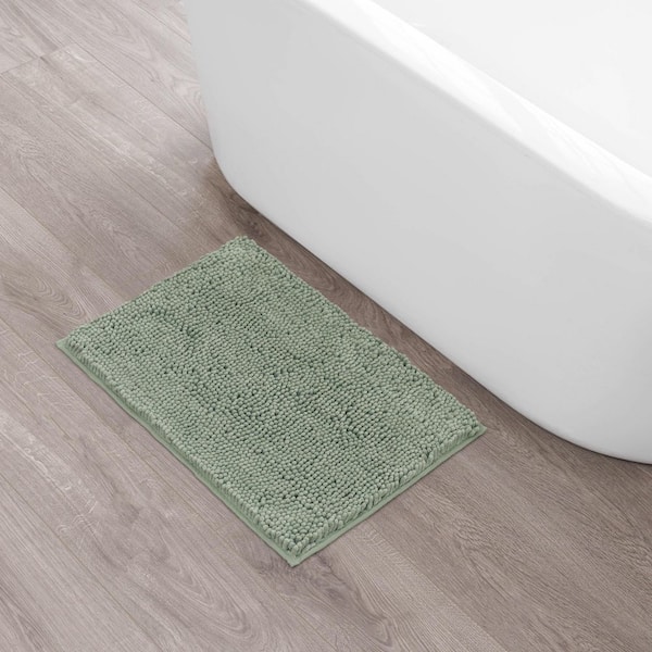 Plush Shag Chenille Sage Green 17 in. x 24 in. Bath Rug
