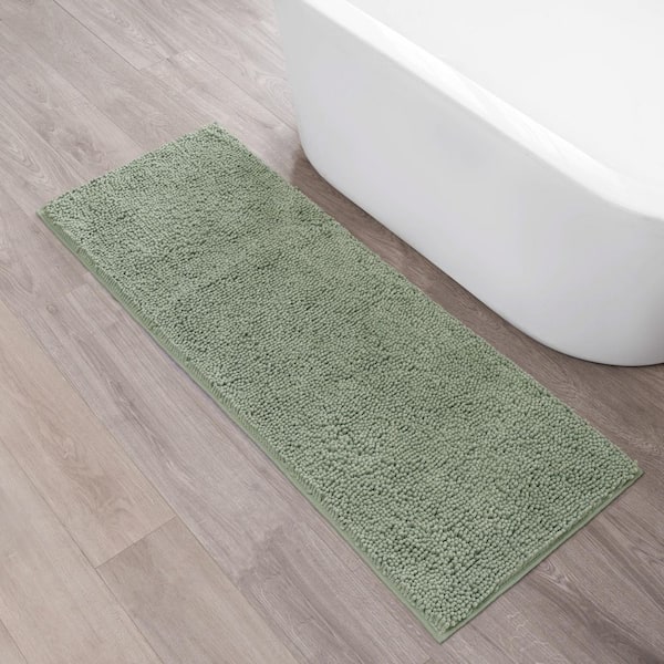 Plush Shag Chenille Sage Green 24 in. x 60 in. Bath Rug