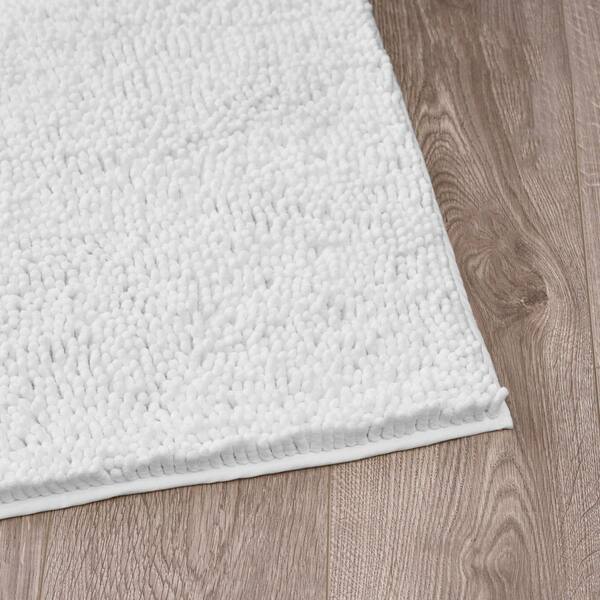Plush Shag Chenille White 20 in. x 24 in. Bath Rug