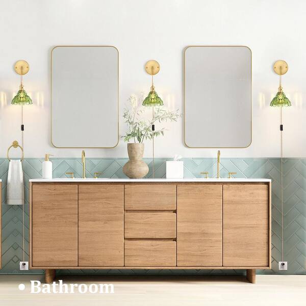 Retro 4.72 in. 1-Light Gold Plug-in Vintage Smart Home Wall Sconce with Lily of the Valley Green Glass Shade
