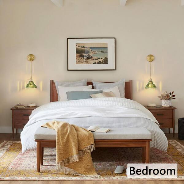 Retro 4.72 in. 1 Light Gold Vintage Smart Home Wall Sconce with Lily of the Valley Green Glass Shade