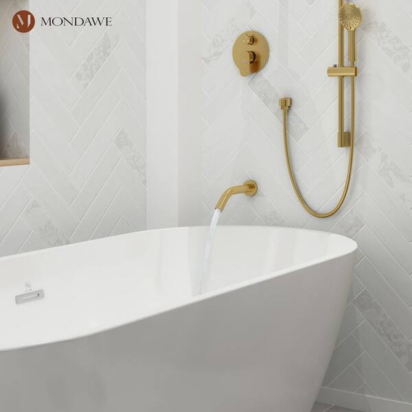 Retro Series 3-Spray Patterns with 1.8 GPM 9 in. Rain Wall Mount Dual Shower Heads with Handheld and Spout in Gold