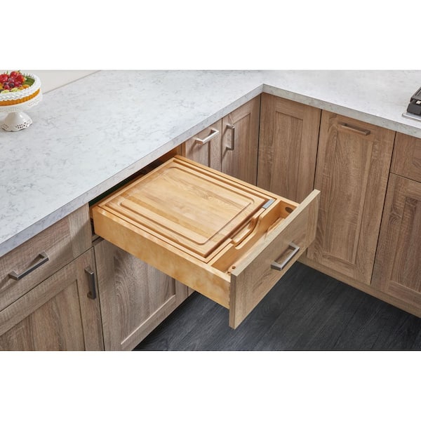 16.5 in. W x 21.65 in. D x 4.38 in. H Maple Wood Knife Organizer and Cutting Board Replacement Drawer System Soft-Close