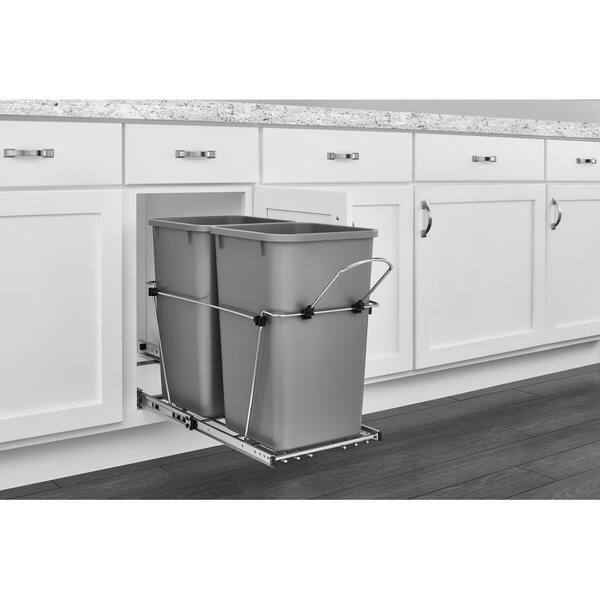 19.25 in. H x 11.81 in. W x 22.25 in. D Double 27 Qt. Pull-Out Silver and Chrome Waste Container