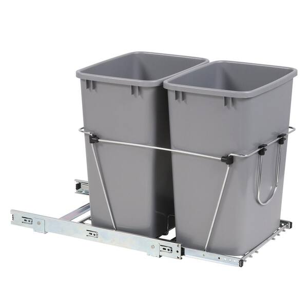 19.25 in. H x 14.38 in. W x 22 in. D Double 35 Qt. Pull-Out Silver and Chrome Waste Container
