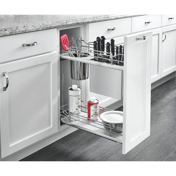 21 in. H x 8.38 in. W x 22.38 in. D Two-Tier Pull-Out Gray Wire Organizer with knife Block