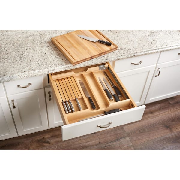 21 in. W x 21.75 in. D x 4.4 in. H Maple Wood Knife Organizer and Cutting Board Replacement Drawer System w/ Soft-Close