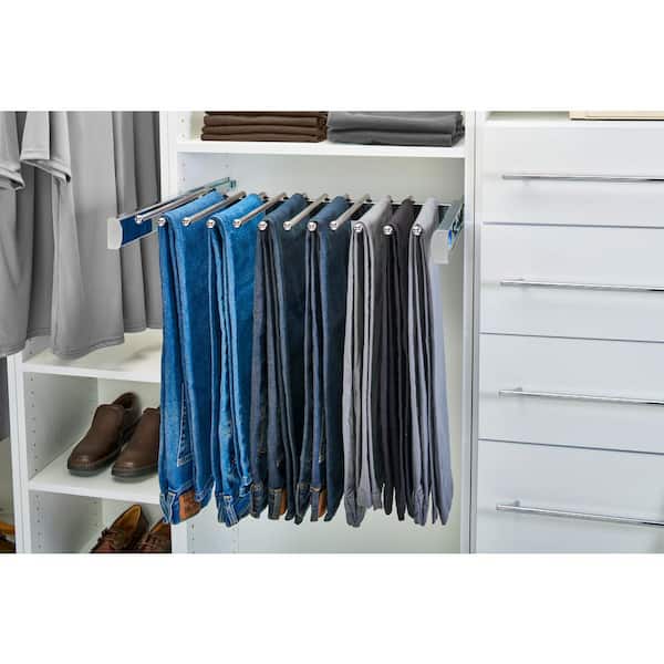 24 in. Polished Chrome Pullout Valet Rod Pants Organizer with Soft-Close for Custom Closet Systems