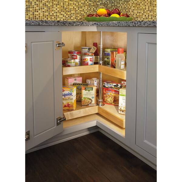 28 in. Natural Wood Kidney Lazy Susans 2-Shelf