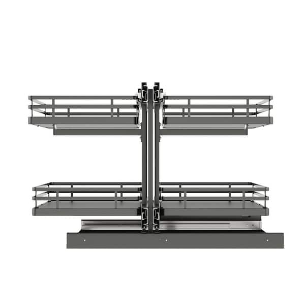 Steel 2-Tier Pullout Solid Bottom Organizer for Blind Corner Cabinets w/ Soft-Close