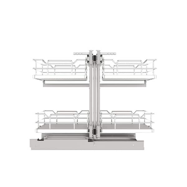 Steel Two-Tier Pullout Solid Bottom Organizer for Blind Corner Cabinets w/ Soft-Close