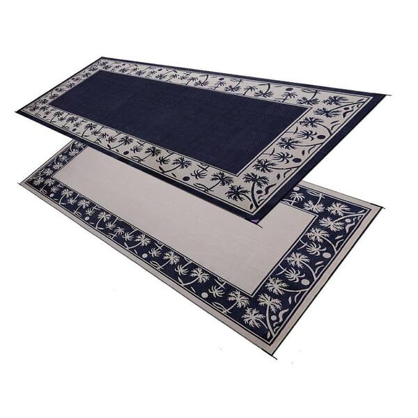 9 ft. x 18 ft. Reversible Mat - Palm Tree Black/Beige