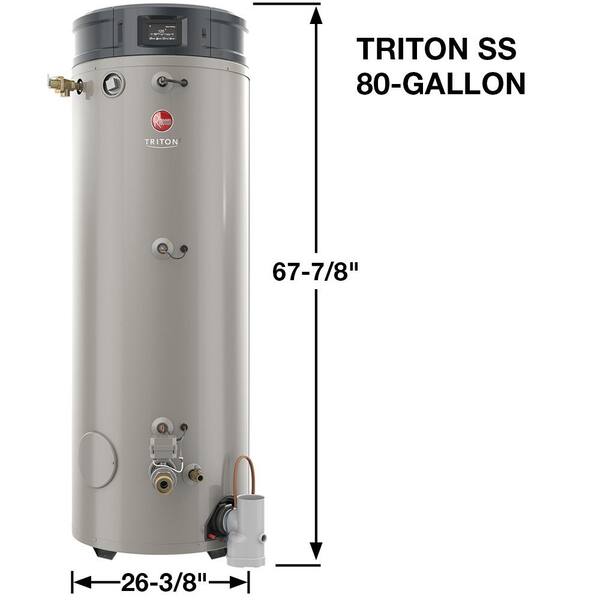 Commercial Triton Premium Heavy Duty High Eff. 80 Gal. 200K BTU ULN Natural Gas ASME Power Direct Vent Tank Water Heater