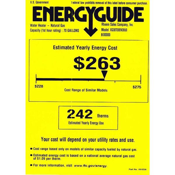 Performance Plus 38 Gal. Tall 9 Year 38,000 BTU High Efficiency Ultra Low NOx Natural Gas Water Heater