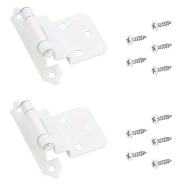 (2-Pack) White Semi-Concealed Self-Closing 3/8 in. Overlay for Face Frame Cabinet Hinge