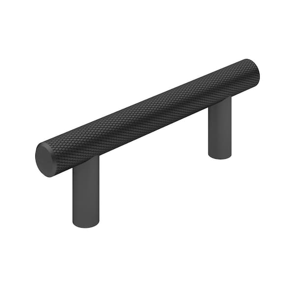 • Knurled matte black pull for kitchens, bathrooms, and more
