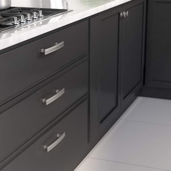 • Classic brushed nickel pull for kitchens, bathrooms, and more