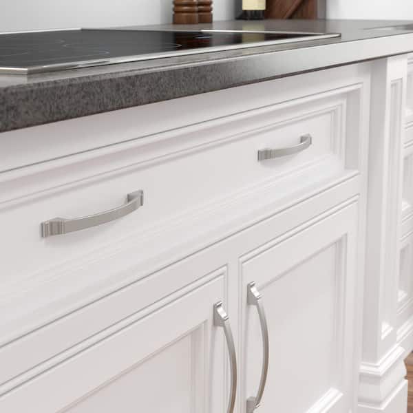 • Traditional brushed nickel pull for kitchens, bathrooms, and more