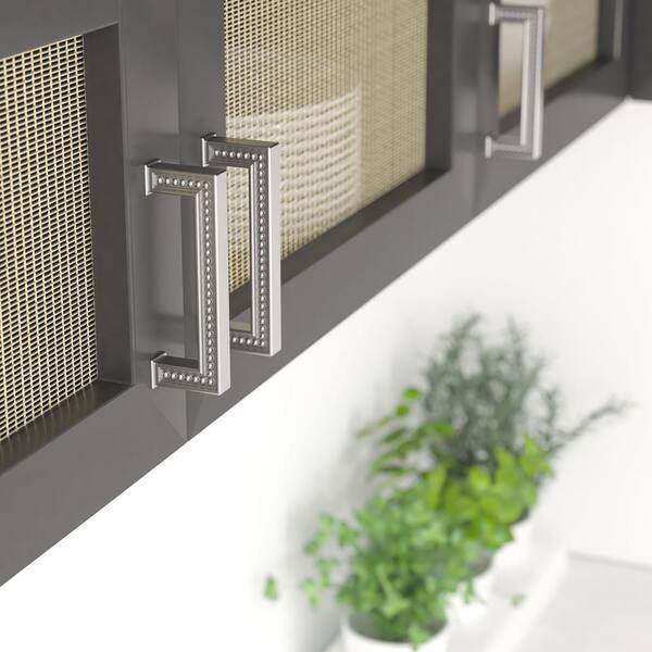 • Classic brushed nickel pull for kitchens, bathrooms, and more